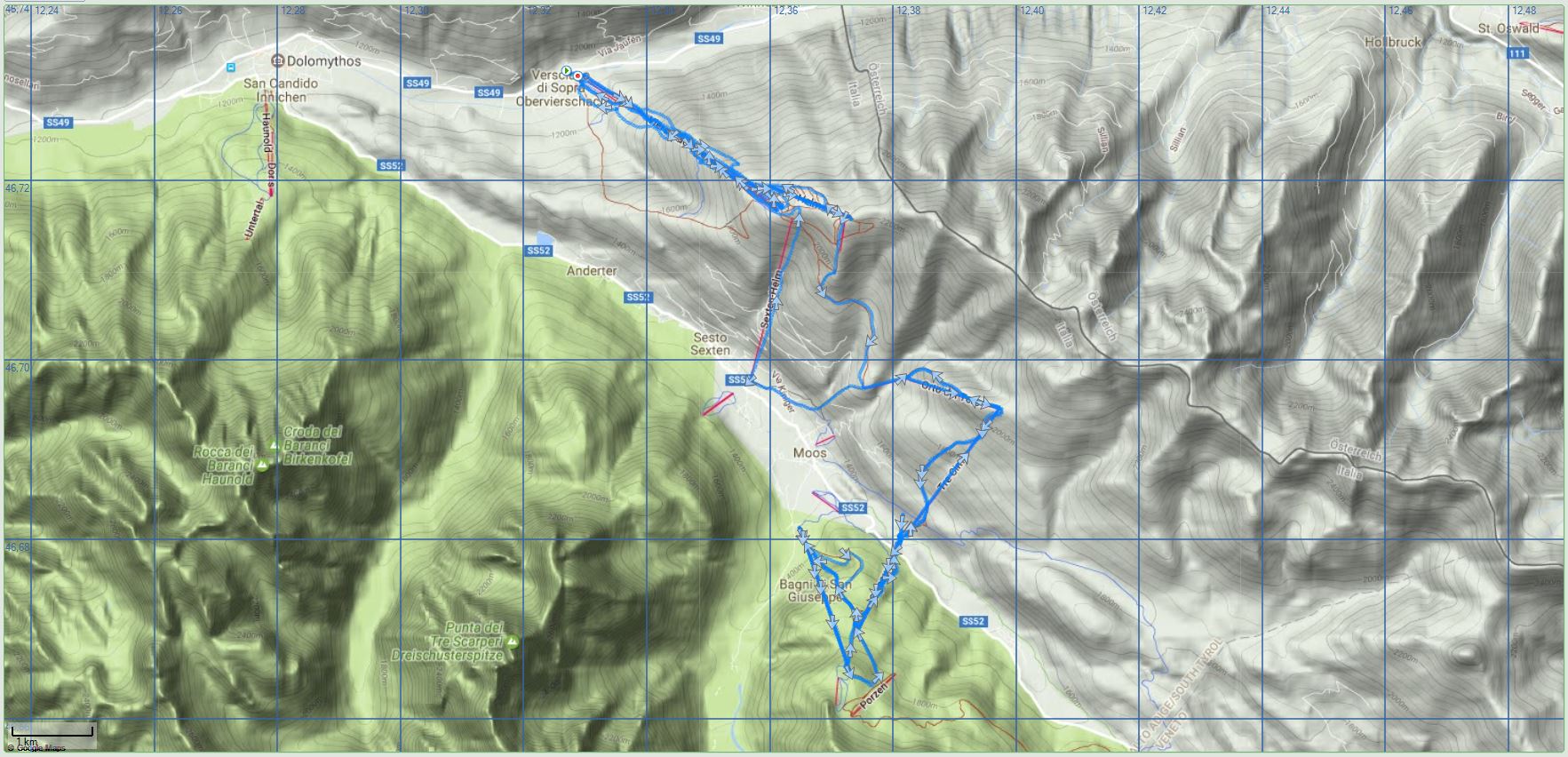 Ich hatte im Vorfeld vom Holger schon viel Gutes über das Skigebiet Helm-Rotwand gehört und ich muss zugeben, er hatte nicht übertrieben. Vom fahrerischen fand ich diesen Tag den Höhepunkt der Woche. Das Skigebiet ist zwar nicht besonders groß, wie der Name schon verrät, sind zwei recht kleine Gebiete über eine größere Skischaukel verbunden worden. Die Qualität der Pisten ist allerdings hervorragend. Auch die etwas abgelegene Lage am Ende des Pustertals sorgt dafür, dass ordentlich Platz auf den Pisten vorzufinden ist.