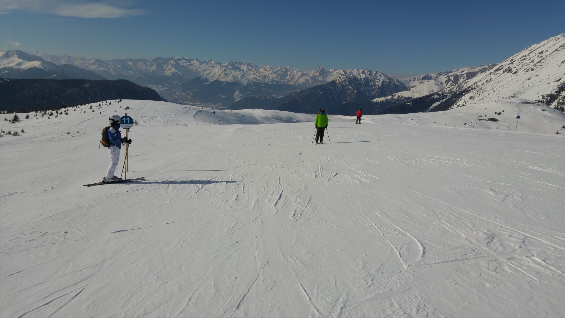 Den Nachmittag gestalten wir dann wieder in Vals. Die Pisten waren ziemlich leer und wir konnten uns entspannt einfahren. Für mich war es der erste Tag auf Skiern nach der letzten Skisafari und am Ende des Tages wurde das Fahrgefühl schon deutlich besser. Dies hing natürlich auch mit den sehr guten Pistenverhältnissen zusammen. Überall war ausreichend Schnee vorhanden und die Pisten-Präparatoren hatten hervorragende Arbeit geleistet.