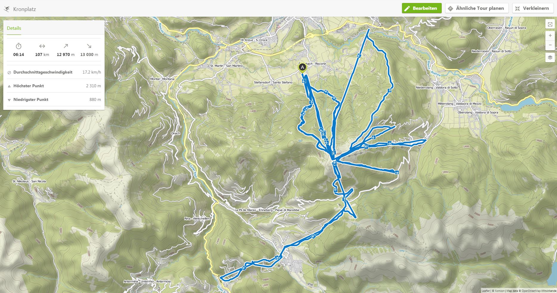 Karte Höhenprofil Geschwindigkeitsprofil Komoot-Tourbericht
