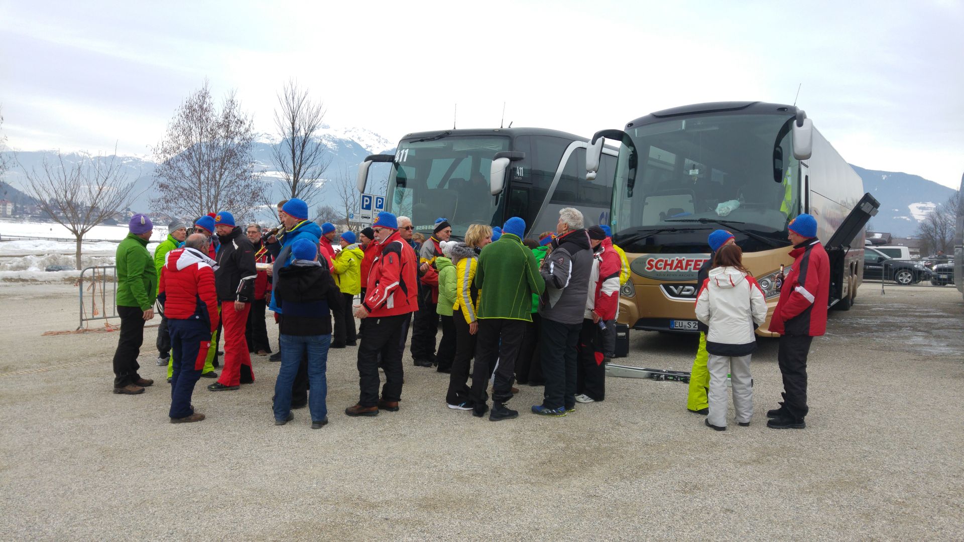 Zurück auf dem Kronplatz konzentrierten wir uns auf die langen nördlichen Wald-Talabfahrten Ried und Sylvester. Die Ried ist mit über 10 km sehr lang, weist aber auch viele sehr flache Gleitstücke im Mitteltal auf. Die Infrastruktur, Talstation der Gondel mit direkten Bahnanschluss ist sehr beindruckend. Viel Spaß hatten wir mit der fast 8 km langen Sylvester-Abfahrt. Sie war bestens präpariert und nicht zu voll und genau der richtige Abschluss für die Skiwoche. Wir trafen uns das letzte Mal zum Apres-Ski am Bus. Am nächsten Tag dösten wir auf der über 13 stündigen Rückfahrt im heftigen Samstags-Verkehr dem heimatlichen Rheinland entgegen. Ein sehr schöner Skiurlaub war mit mehr oder weniger leichten Blessuren absolviert!