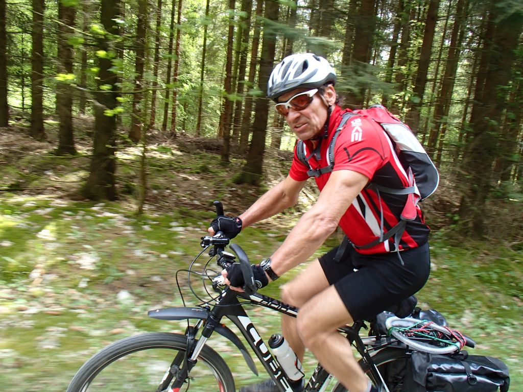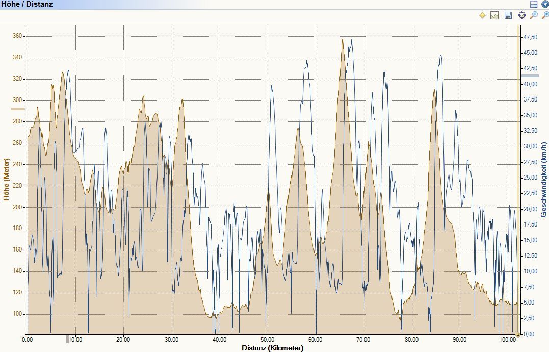 Zu diesem Zeitpunkt wussten wir glücklicherweise noch nicht, dass dies der hügeligste Tag werden sollte. In den Leistungsdaten sieht man, das am Ende des Tages über 102 km mit 1360 Höhenmetern und Steigungen bis zu 20% absolviert wurden. Weiterhin waren wir im Eggegebirge unterwegs uns bewegten uns auf schönen Straßen in Richtung des Weserberglands. Hierbei kamen wir über die Ort Vörden, Fürstenau und Bödexen schließlich durch einen großen Wald (s. links oben) zur Weser bei Holzminden.