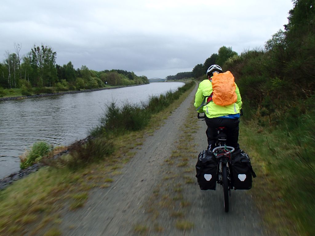 Dieser folgten wir einige Zeit über Alleringerleben, Eimersleben bis Erxleben. Kurz vor Brumby verließen wir die B1, um nun über einsame Plattenwege durch eine landschaftlich schöne Gegend zu fahren. In Nordgermersleben haben wir uns dann kleidungsmäßig etwas besser gegen den Regen geschützt. Dieser ließ dann aber auch bald immer mehr nach. Über Gutenswegen und den Ort niedere Börde erreichten wir den Mittellandkanal. Leider waren hier die Deiche im Umbau, so dass die Strecke am Kanal zunächst etwas improvisiert über schlechte Plattenwege und durch Baustellen ging. Kurz vor Magdeburg wurden die Wege auf dem Deich dann immer besser. Zum Mittag gönnten wir uns dann neben dem historischen Schiffshebewerk Magdeburg Rothensee eine Fisch-Soljanka (Russische Gemüsesuppe mit Fischeinlage).