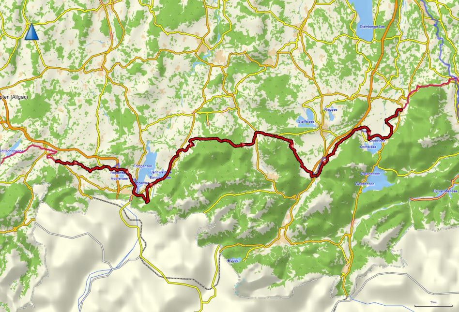 Sehr schnell ist man dann aber wieder mitten in der Natur. Wir kamen am stillen Bannwaldsee vorbei und konnten schön flach bis hinter Trauchgau rollen.