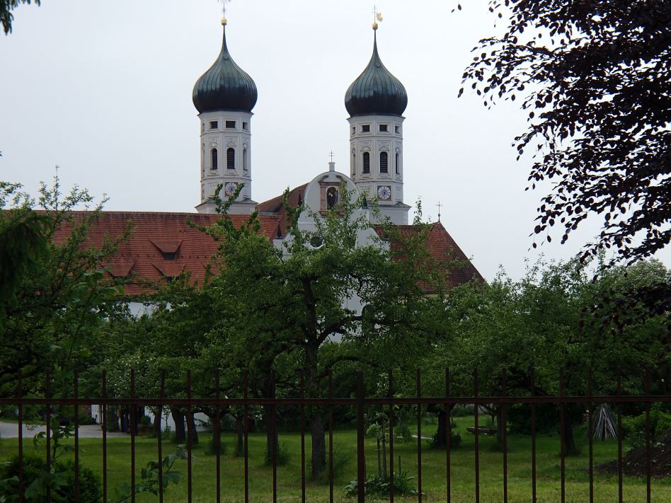 In Kochel am See legten wir uns auf Benediktbeuren als Tagesziel fest. Dies war eine gute Wahl, denn wir fanden im Hotel Post schöne Zimmer und freundliches Personal vor. Das immer noch sehr warme Wetter ermöglichte uns nach dem guten Abendessen im Biergarten des Hotels, einen ausgedehnten Spaziergang durch den Ort. Das sehr gepflegte Kloster Bendiktbeuren mit seinen umfangreichen Einrichtungen durchstreiften wir bis in der Dämmerung. Die Bauten und Aktivitäten dort hinterließen einen nachhaltigen Eindruck.