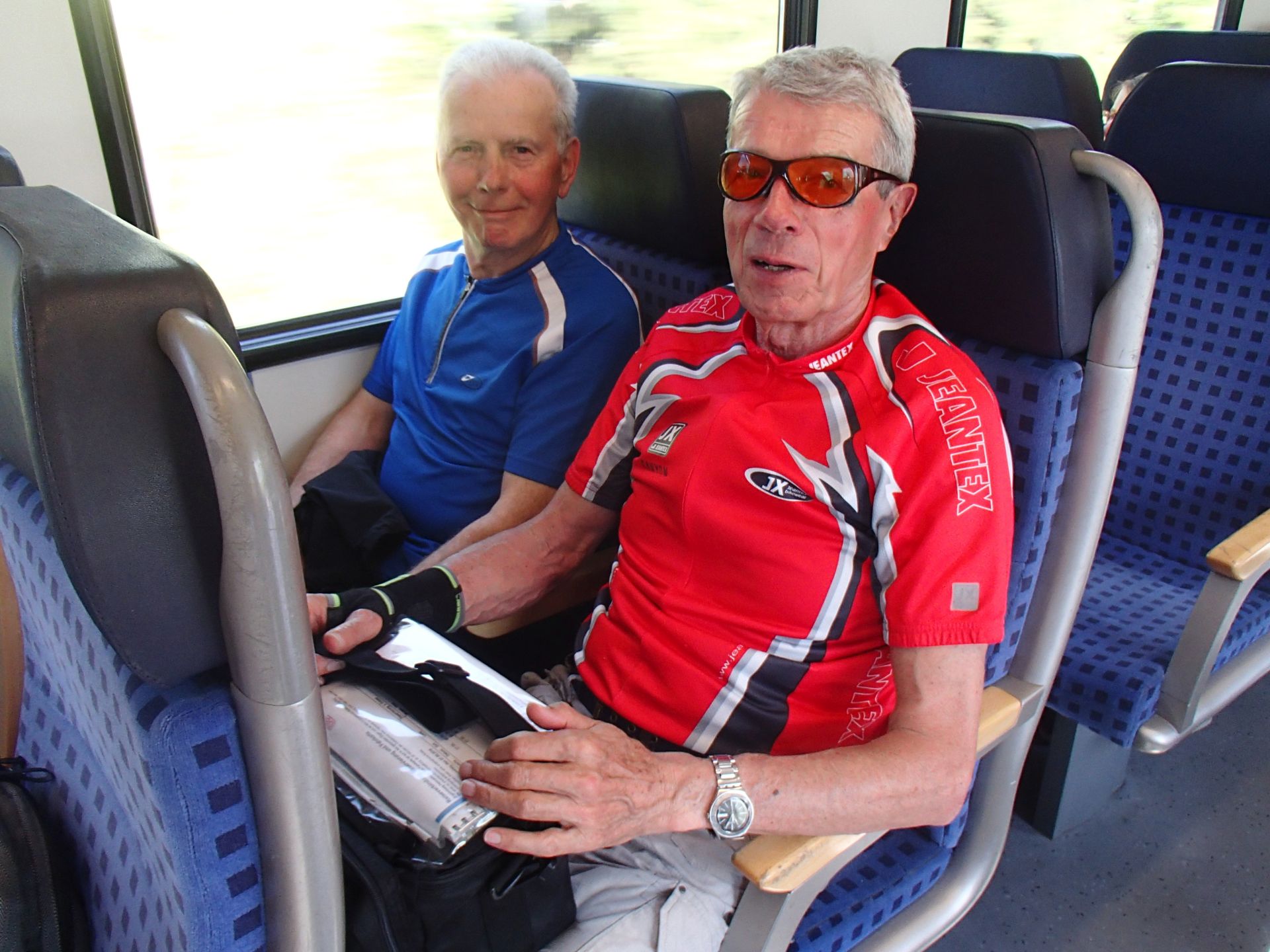 Der Karl hatte die Anreise von Kerpen nach Regensburg mit der Deutschen Bundesbahn organisiert. Dank eines Gruppentickets konnten wir und unsere Räder für 26 € pro Person nach Regensburg HBF reisen. Als die S-Bahn um 6:15 in Sindorf einlief standen wir voll aufgerüstet bereit. Zum Glück fanden wir im letzten Augenblick vor der Abfahrt noch den Eingang zum "Fahrradbereich". Im Kölner HBF folgte der Umstieg in den IC nach Stuttgart. Leider war auch das nicht ganz unproblematisch. Als Amateur im Bahnfahren scheiterte ich im ersten Versuch an den zwei steilen schmalen Stufen in den Rad-Wagon. Dank den schweren Satteltaschen und meiner offensichtlich falschen Grifftechnik schlug das Rad nach hinten über und ich lag rücklings auf dem Bahnsteig. Das hat bestimmt sehr lustig ausgesehen, ich konnte es allerdings nicht in vollen Zügen genießen. Nach diesen kleinen Schwierigkeiten blieb dann sehr viel Zeit, um sich wieder zu stärken und mental auf den ersten Radtag vorzubereiten.