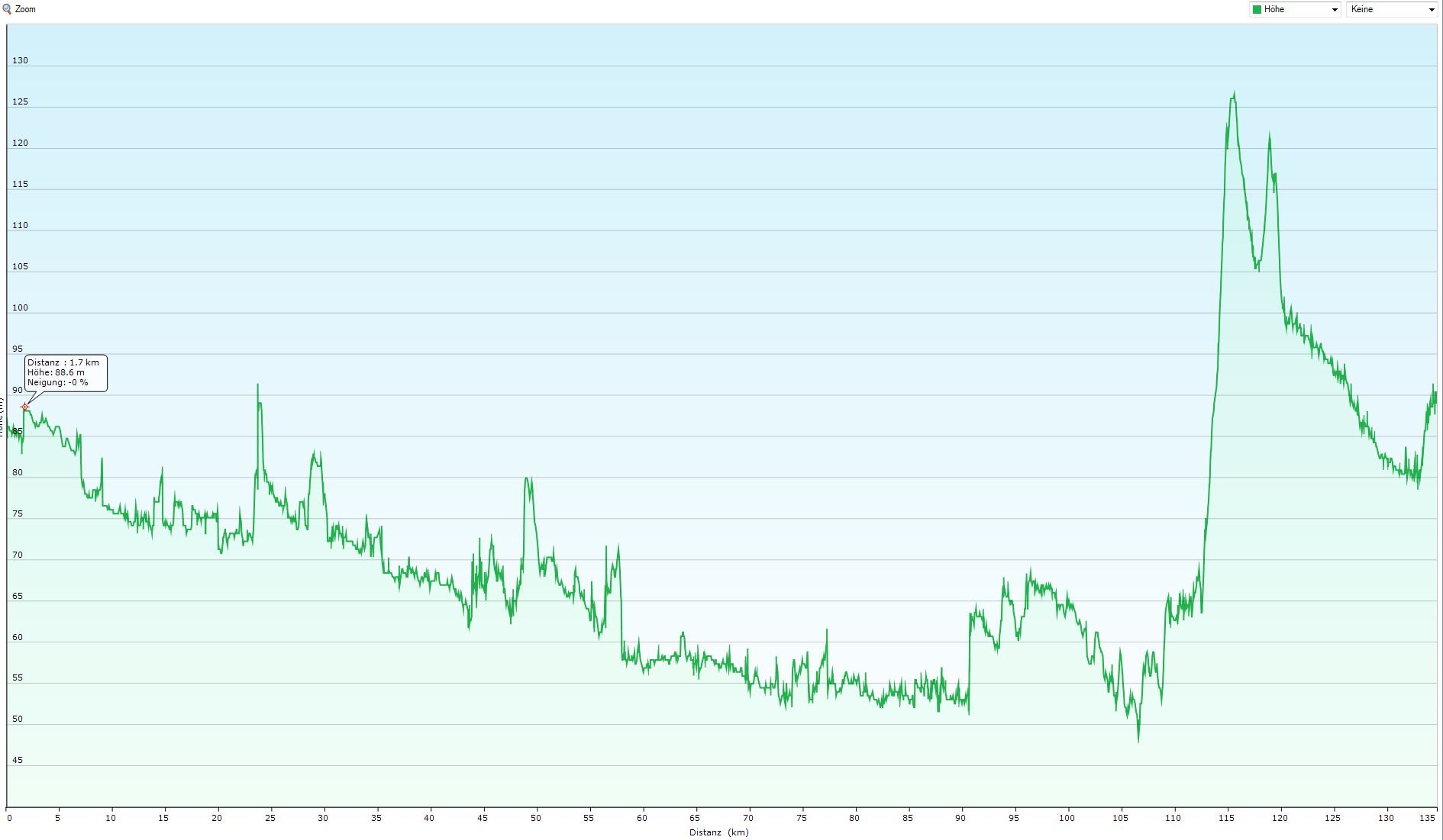 Ab der Kennedy-Brücke verließen wir den Rheinradweg und fuhren nun eine frei geplante kurze Variante in Richtung Kerpen. Bis Wesseling blieben wir in der Nähe des Rheins und dann mussten wir hinter Brühl den letzten Hügel der Tour (Die Ville) überqueren. Wir befanden uns nun auf heimischem Gelände, folgten dem Erft-Radweg bis zur Kölner Straße in Kerpen, wo sich unsere Wege trennten.