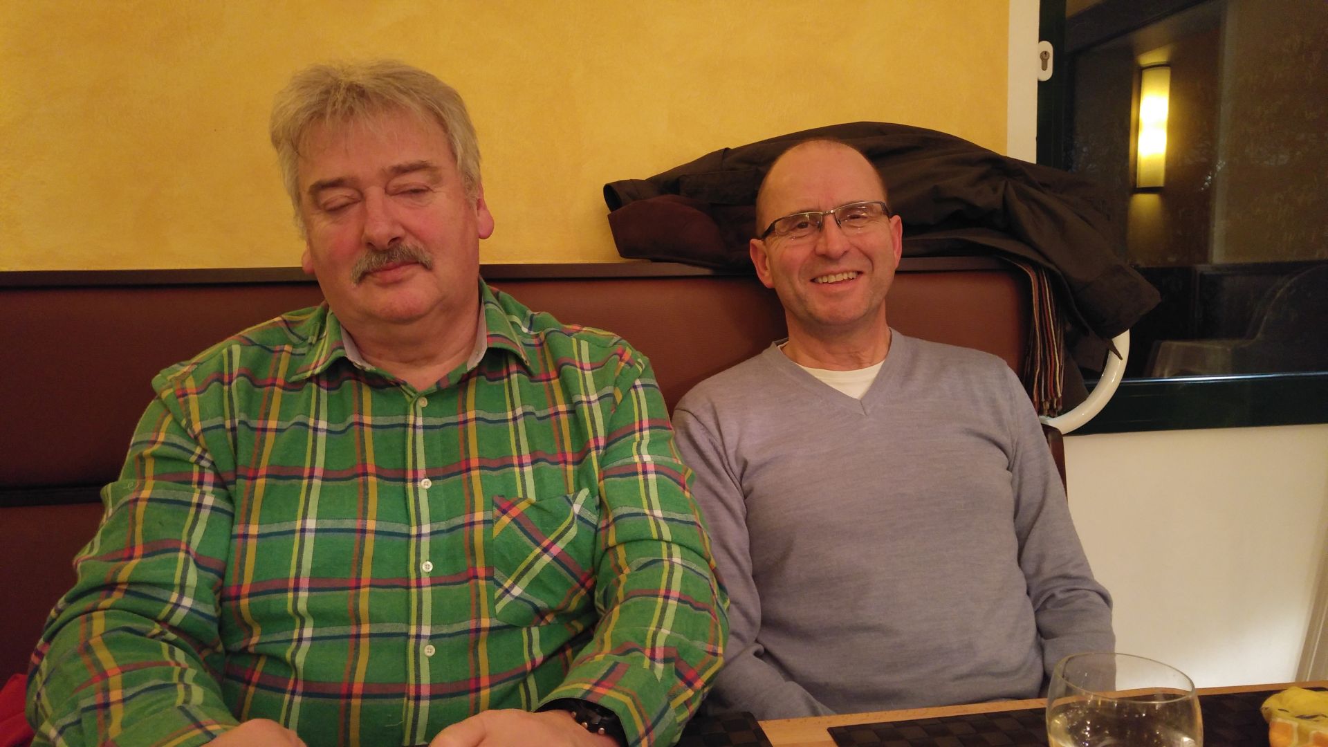 Ende Februar trafen wir uns im Gasthaus Schweitzer in Kerpen-Sindorf in diesem Kreis (s. links), um die Logistik der Radtour zu besprechen. Die Entscheidung für die Romantische Straße hatten wir schon im Vorjahr getroffen. Nun wurden die Termine festgelegt und die Aufgaben verteilt. Der Karl kümmerte sich, wie immer, um die Beschaffung der Bahntickets für die Hin- und Rückfahrt. Der Willi nahm die Planung der ersten Übernachtung in Pfronten auf seine Kappe. Mein Job war die Detailplanung der Radroute im Vorfeld ( inclusive Laden auf das Radnavigationsgerät). Hermann brachte ein Routenheft mit Karten und Übernachtungsmöglichkeiten ein.