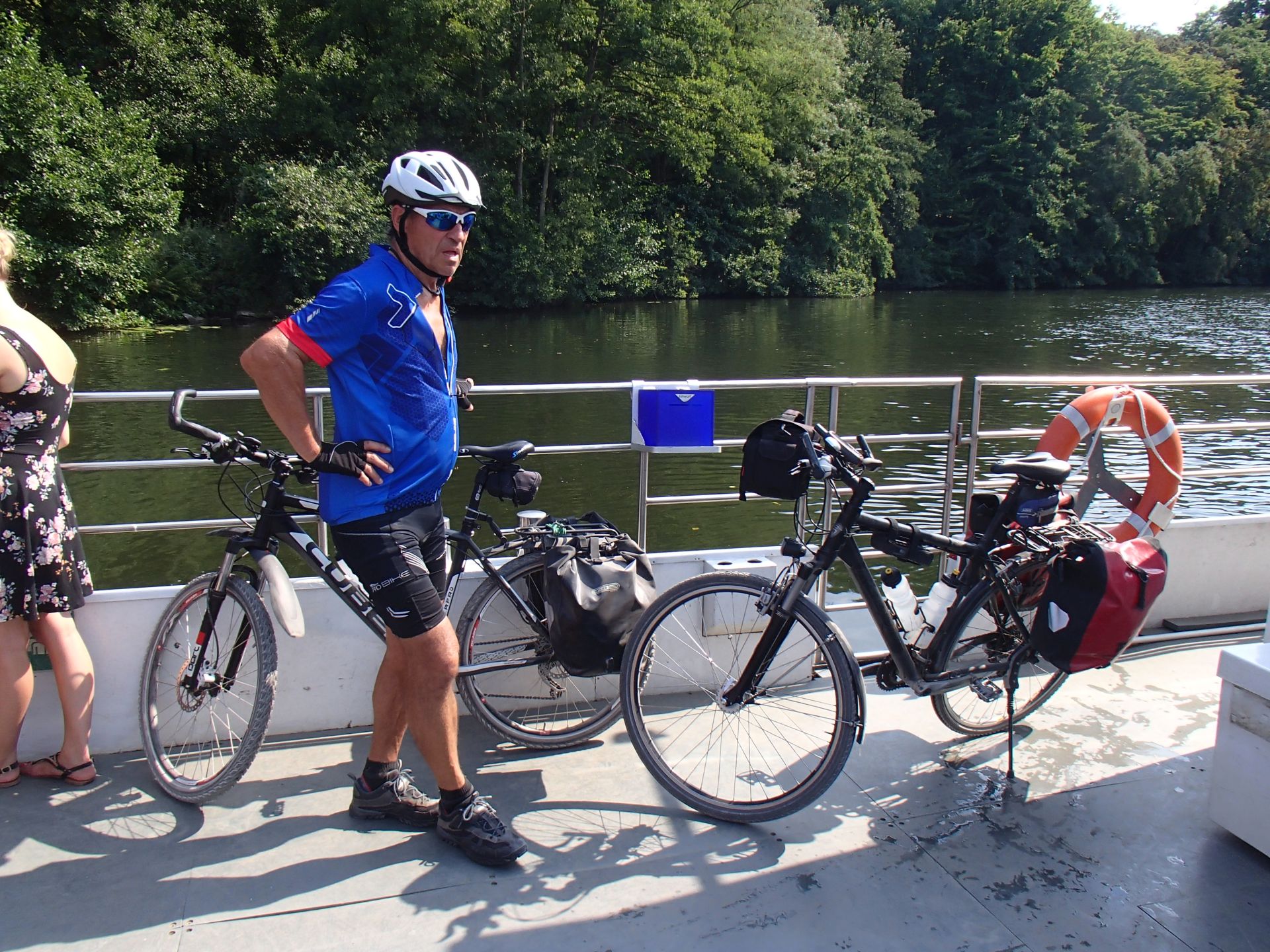 Ich hatte mir mehr Zeugnisse der Schwerindustrie erhofft, für die das Ruhrgebiet früher stand. In der Praxis fuhren wir von einem Erholungsgebiet zum nächsten (Hengsteysee, Harkortsee, Kemnader See und das idyllische Ruhrtal zwischen Hattingen Bochum Dahlhausen). Den ganzen Tag über konnten wir wegen des extrem hochsommerlichen Wetters schon die lokale Bevölkerung beim Baden in Relaxen in den Ruhrauen bobachten. Beim letzten Boxenstopp des Tages kurz vor Essen-Steele planten wir um. Da der Volker schon seit dem zweiten Tag starke Sitzbeschwerden hatte und die Temperaturen sich deutlich höher als vorhergesagt entwickelt hatten, wollte er sich den letzten Tag nicht mehr antun. So trennten wir uns in Essen-Steele, er steuerte den Hbf an und ich wie geplant Gelsenkirchen.