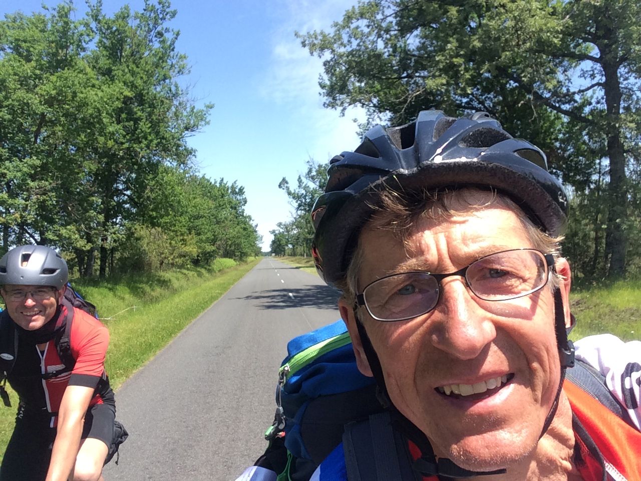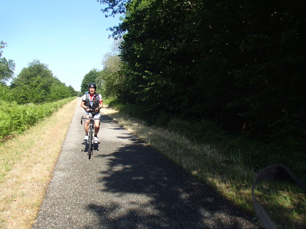 Die folgenden Stunden sollte sich das Landschaftsbild nicht mehr ändern. Auf breiten geraden Trassen fast ohne Autoverkehr rollten wir durch die endlosen Wälder. Wegen des sandigen Bodens bestanden diese aus Kiefern und anderen Nadelbäumen. Wälder und einzelne Lichtungen wechselten sich ab, die Straßen waren schnurgerade angelegt, da auch Oberfläche des Belags meist nicht zu rau war, kamen wir ins Rollen. Es war auf Dauer schon etwas langweilig und wir suchten einen Rhythmus von regelmäßigen Führungs-Wechseln. Das funktionierte sehr fair und wir kamen gut voran. Schatten fanden wir in diesen riesigen Wäldern allerdings kaum, da der Abstand zwischen Straßenrand und Wäldern recht großzügig gestaltet war. Die Windjacken hatten wir schon früh ausgezogen und die Temperatur kletterte im Laufe des Tages auf bis zu 36 Grad in der Sonne. Wir durchquerten auch die eine oder andere kleine Ansiedlung, Menschen sahen wir allerdings keine, außer einigen anderen sonntäglichen Radfahrern und sonstigen Ausflüglern. Nach 81 Kilometern und zur heißesten Mittagszeit durchquerten wir mit Luxey doch wieder mal einen kleinen Ort. Hier fanden wir sogar eine offene Bar, gönnten uns ein Stil-Eis und der Wirt füllte uns auch die Trinkflaschen mit gekühlten Wasser nach. 12 Kilometer nach dieser erholsamen Pause erreichten wir den höchsten Punkt der schiefen Ebene und die letzten 38 Kilometer ging es wieder minimal bergab, ohne das sich das Landschaftsbild großartig änderte. Wir kamen sehr gut voran und umfuhren kurz vor unserem Zielort den dortigen Militärflughafen, um dann auf den letzten Kilometer in eine seltsame Aktion von französischen Zigeunern zu geraten. Dutzende große Wohnwagengespanne pendelten mit hoher Geschwindigkeit zwischen zwei großen Kreisverkehren in der Nähe des Militärflughafens hin und her, weniger rücksichtsvoll als der typische französische Autofahrer. Den Hintergrund dieser Aktion haben wir allerdings nicht verstanden. Kurz danach erreichten wir schon am frühen Nachmittag unser Hotel, welches schön zentral an einem riesigen Kreisverkehr gelegen war.