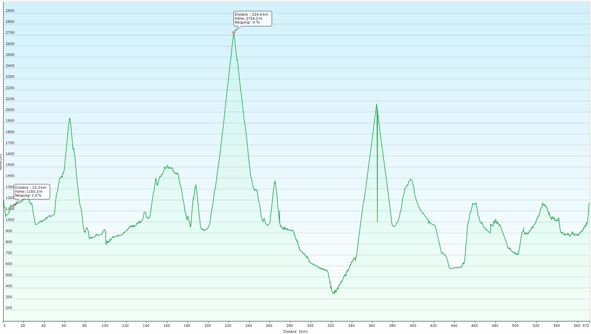 Grafik mit dem Höhenprofil