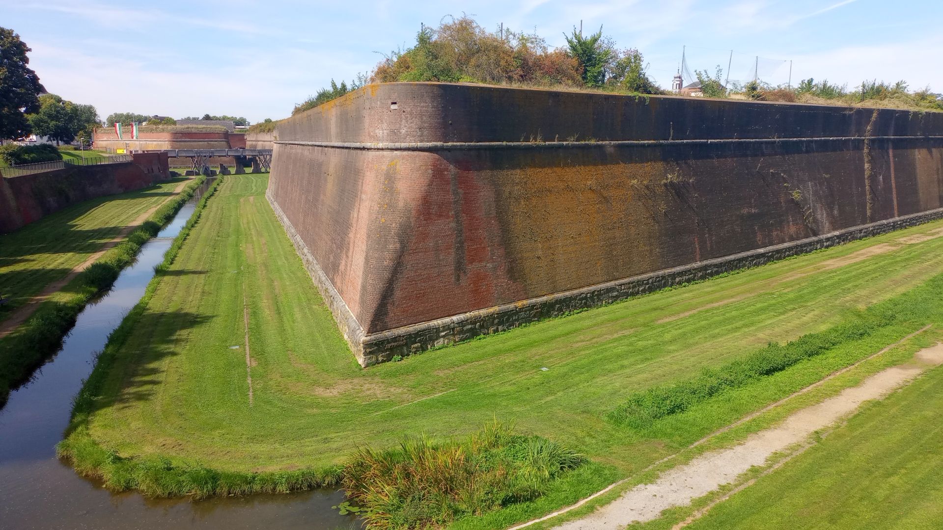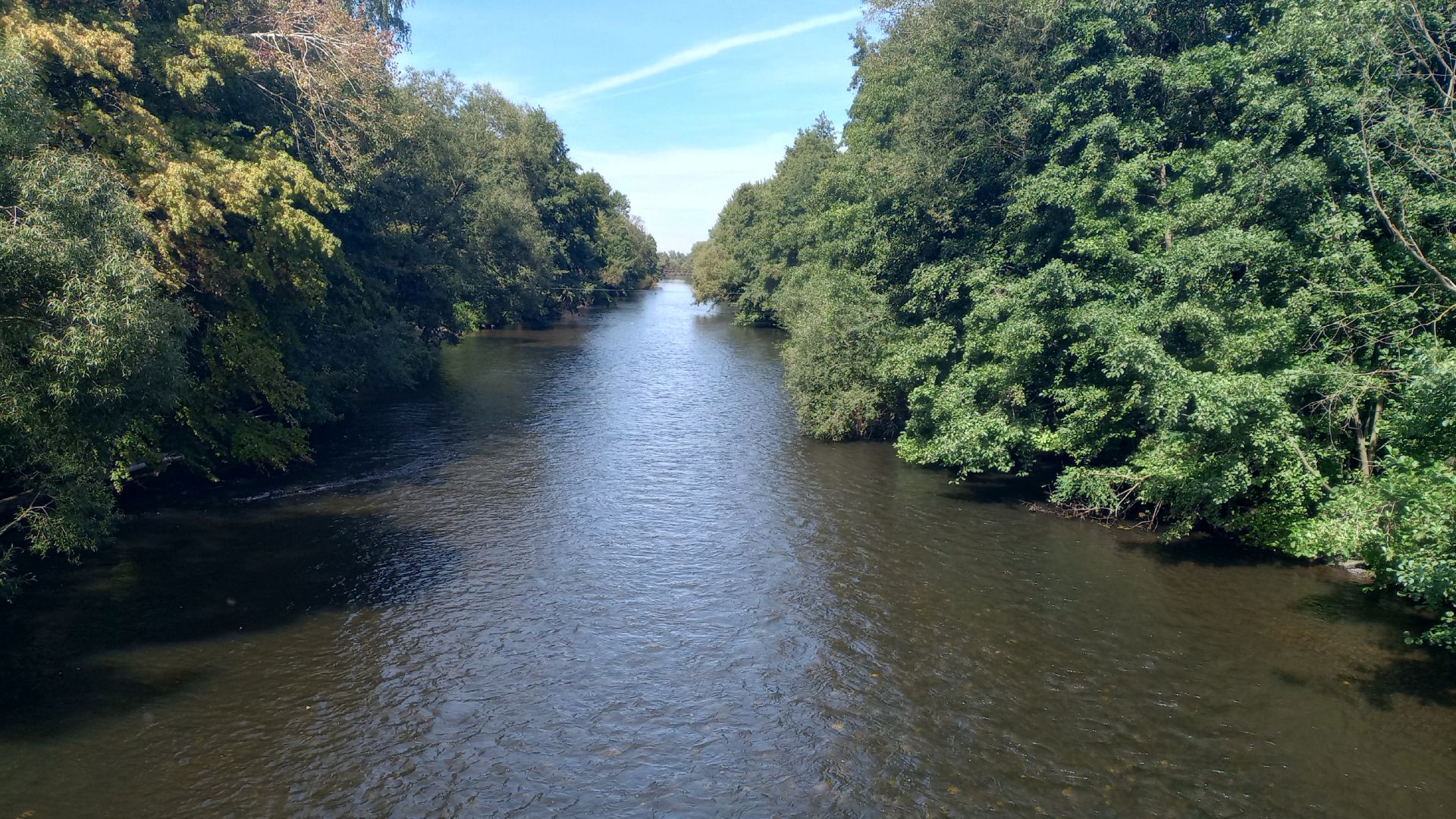 Über Ülpenich und am Sportsee vorbei erreichten wird Zülpich und hielten uns dann an der B56 bis kurz vor Düren. Auf Seitenstreifen und Radwegen war das sehr gut zu fahren. An der B264 bogen wir nach Merzenich, welches wir durchquerten. Kurz danach bogen Holger und der Gymnicher Wilfried in Richtung Kerpen ab, während der Kerpener Wilfried und ich bald Jülich Zentrum über Stetternich und die Via Belgica erreichten. Hier hatten wir schon knapp 90 Kilometer hinter uns und legten eine Pause in einer Bäckerei ein, in der Nähe der Zitadelle. Wir fühlten uns gut gestärkt und die Trinkflaschen waren auch wieder voll. Es konnte auf der linken Rurseite weiter in Richtung Norden gehen. Über Koslar und Merzenhausen kamen wir auf die L228, welche direkt auf Linnich zuläuft. Auch hier fuhren wir oberhalb des Rurtals durch die intensiv betriebene Landwirtschaft. In Linnich war, wie auch in Jülich die Haupt-Rurbrücke nach Schäden durch das Julihochwasser 2021, immer noch gesperrt. Zu unserem Glück gab es etwas weiter nördlich nach eine zweite Brücke für die B56, die wir nutzen konnten.