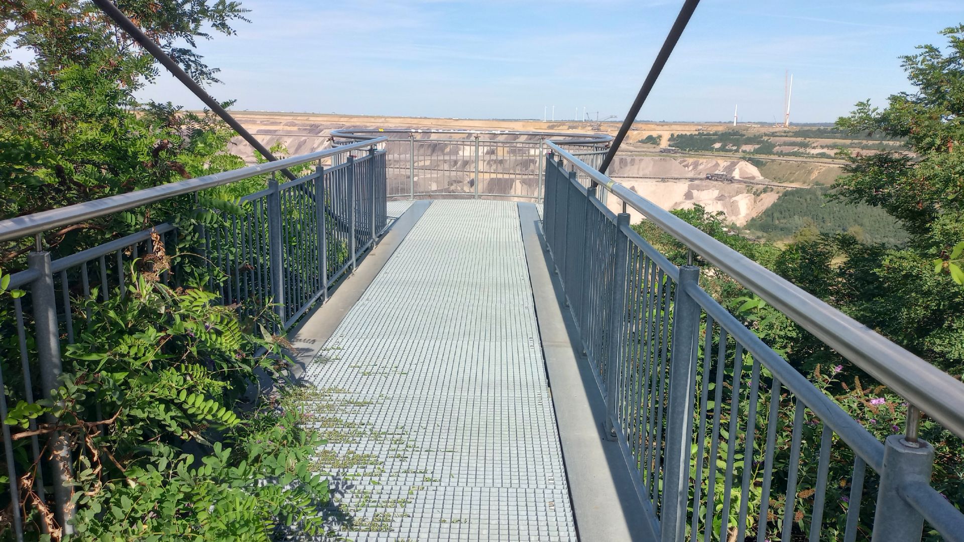 Knapp über 100 Kilometer hatten wir schon geschafft, an diesem heißen Sommertag. Egal wo man aus dem Rurtal hochfährt, es geht spürbar hoch. Für den Weg in Richtung Titz wählten wir die kleine Kreisstraße über Glimbach und Kofferen, die sehr schön zu fahren war. Nach Titz war Jackerath unser nächstes Zwischenziel, weil ich dem Wilfried gern den Skywalk des Tagebau Garzweiler zeigen wollte. Auf dem unteren Bild kann man die gepflegte Anlage gut erkennen, von der aus man wirklich den kompletten Tagebau überblicken kann. Wir verweilten nicht zu lange, da sich so langsam die Muskeln meldeten. Die letzten 45 Kilometer mussten noch abgespult werden. Für diesen Tag hatte ich nicht Standardvariante am Tagebau Hambach entlang geplant, sondern eine Strecke über Bedburg, Paffendorf und Zieverich. Das war auch mal interessant, aber letztlich zu verkehrsreich, also nicht unbedingt empfehlenswert. Die Strecke ab Thorr über Heppendorf war dann wieder sehr gut zu fahren und so hatten wir mit müden Beinen noch ein ganz gutes Ende des Tages.