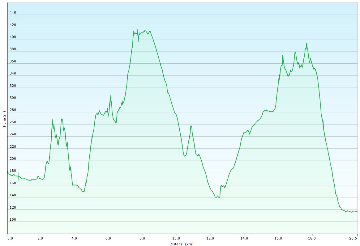 Nach der Pause ging es lange auf einem breiten Waldweg bergab, bis wir auf der Höhe von Mayschoss einen Abstecher zur Saffenburg einbauten. Die Burgruine liegt in erhabener Lage über dem Ort und war früher sicher von strategischer Bedeutung. Heute ist es mehr ein Aussichtspunkt, flankiert von einer geschlossenen Imbissbude und einem sehr beeindruckenden Kaminholzlager. Wir konnten auch unser nächstes Zwischenziel, den Ort Rech schon ins Auge fassen. Rech erreichten wir bald und Holger fand auch den verschlungenen Weg durch den Ort über einige Treppen. Nun folgte der finale Aufstieg des Tages zur Krausberghütte. Neben einem ebenfalls geschlossenen Ausflugslokal befindet sich ein steinerner Turm, der wieder eine gute Fernsicht bot. Köln und auch das Siebengebirge waren recht klar zu erkennen. Der nächste Abschnitt führte uns über eine Art welliges Hochplateau, wie fast den ganzen Tag den Hinweisen "Ahrsteig Verbindungsweg" folgend. Unser Ziel war nun der Alfred Dahm Turm, um die letzten Essensvorräte zu vertilgen. Auch dieser hölzerne Aussichtsturm bot einen Blick auf den man nicht verzichten sollte.